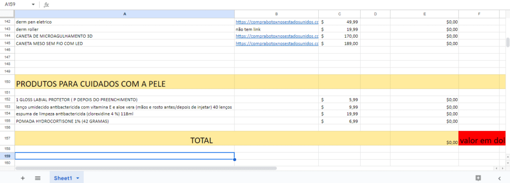 PARA VER O VALOR TOTAL DA SUA COMPRA, ROLE TODA A PLANILHA ATÉ O FINAL.